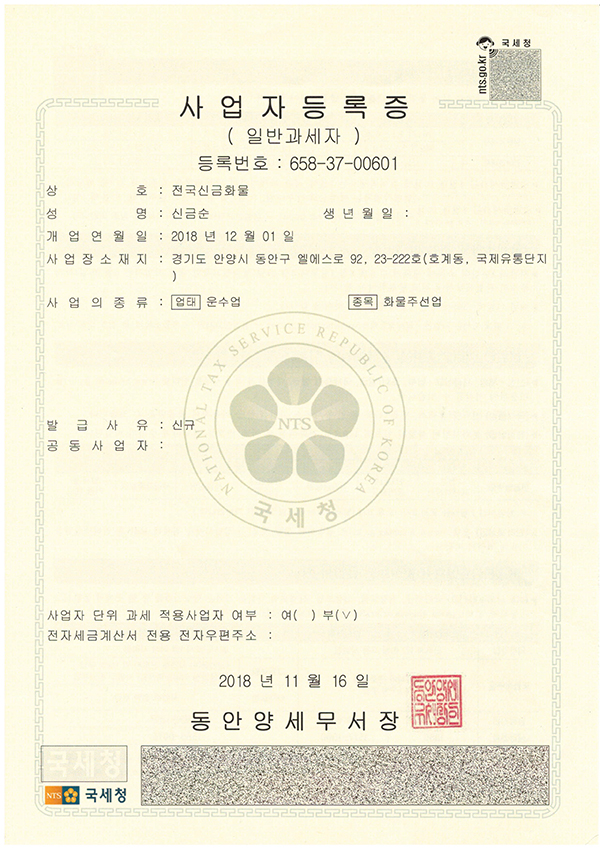 사업자번호 | 6 5 8 - 3 7 - 0 0 6 0 1 |